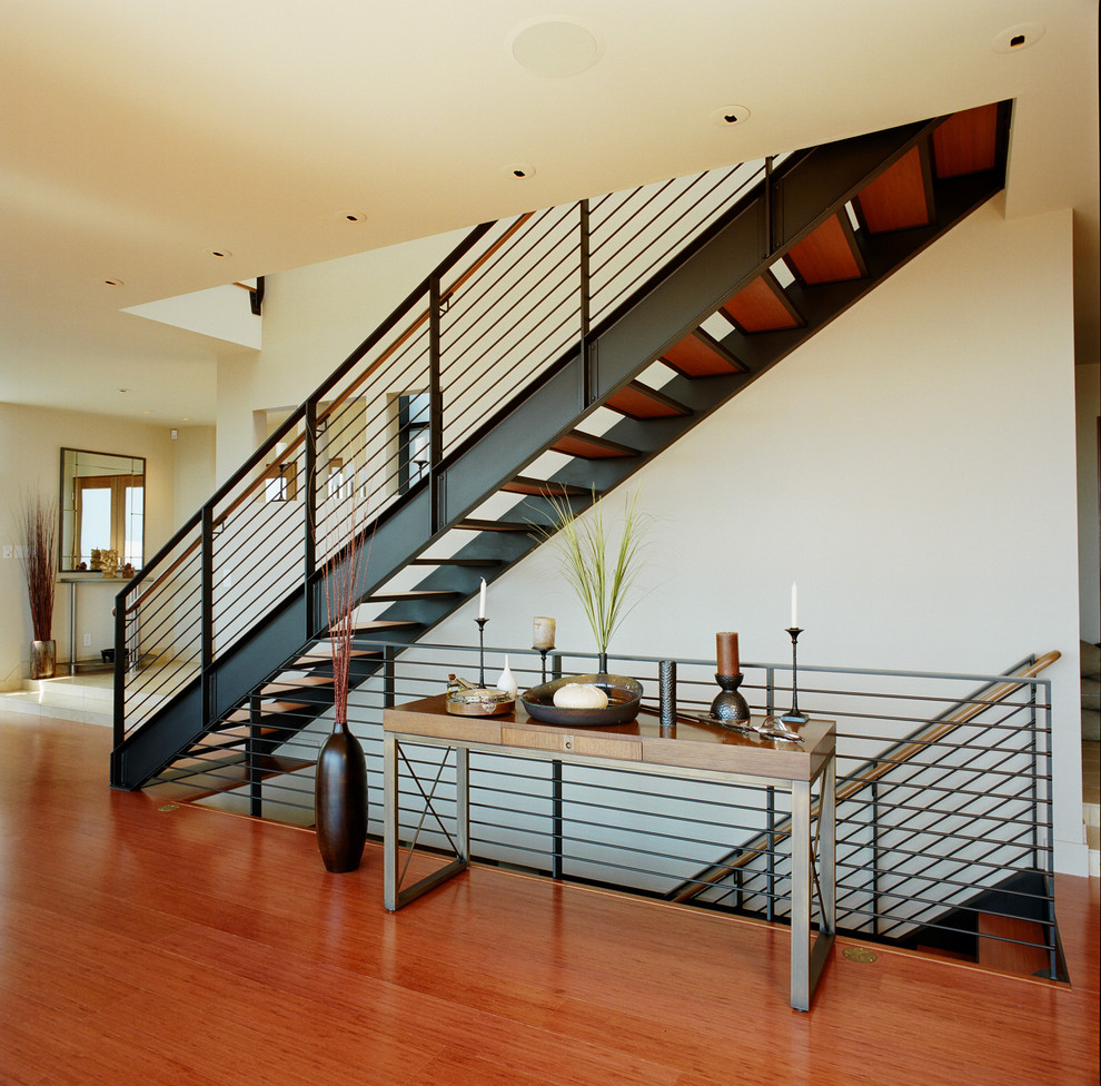 Кроме того, что лестница – это сложное архитектурное сооружение, она является важным элементом интерьера. Поэтому важно хорошо представлять внутренний дизайн помещений и то, как в него будет вписана лестница. Несмотря на кажущуюся легкость задачи, проблема выбора всегда есть, вариантов и моделей изделий много, на любой вкус и цвет. Поэтому оптимально будет на этапе проектирования здания выбрать конструкцию лестницы, а затем в процессе разработки дизайна помещений определится с конечным результатом. Первое, что необходимо рассмотреть – где располагается металлическая лестница. Если это часть коридора или прихожей, то можно смело использовать массивную пролетную конструкцию. Дизайн этих помещений обычно таков, что массивные элементы идеально вписываются. Расположение лестницы в гостиной накладывает определенные ограничения и требования на дизайн. Это может быть винтовая, каркасная или какая-либо еще металлическая лестница, вписывающаяся в общую стилистику комнаты.
